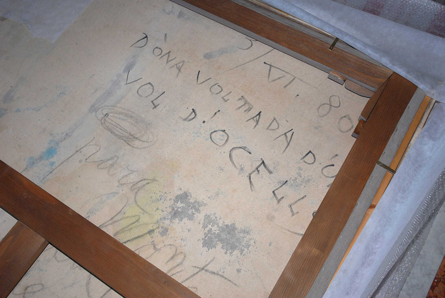 Sulla tela si scorgono ancora le impronte delle mattonelle del pavimento dello studio di Palma di Maiorca dove Mirò la dipinse. Del resto è lo stesso Artista a raccontare la sua tecnica di lavoro: “Appoggio i miei quadri a terra. Quando sono per terra, posso camminarci sopra. Per terra lavoro sdraiato a pancia in giù. Oh sì, mi sporco tutto di pittura, faccia, capelli, mi ritrovo schizzi dappertutto”