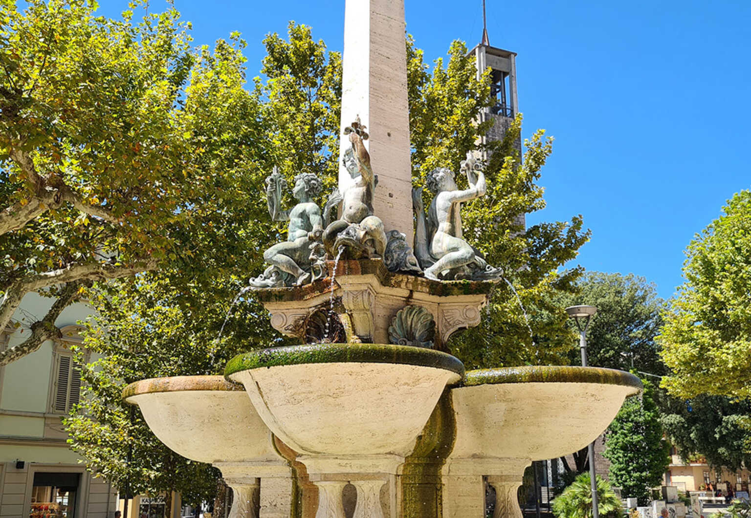 Procedendo all’interno del Parco Comunale è facile intravedere lo Stabilimento Tamerici, nel cui giardino fu collocata, negli anni trenta, la Fontana delle Naiadi di Mario Rutelli (1859-1941) versione miniaturizzata di quella che lo scultore palermitano realizzò a inizio Novecento per la Piazza dell’Esedra a Roma. L’architettura originale, rinascimentale, doveva essere ornata da quattro leoni, che però furono sostituiti dalle Naiadi, divinità marine. Il modello fu acquistato direttamente dalla famiglia Rutelli, che lo aveva conservato.
