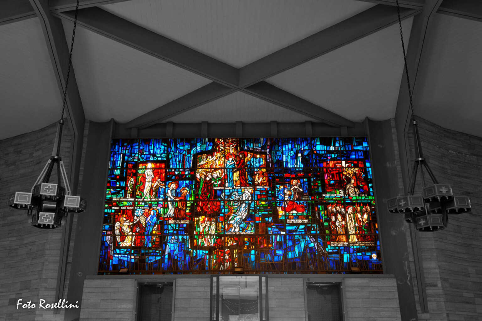 Tra le opere artistiche inserite nella chiesa si ricordano il crocifisso metallico di Sauro Cavallini, le vetrate e i mosaici di Giorgio Scalco e i lampadari di Carmelo Pucci.