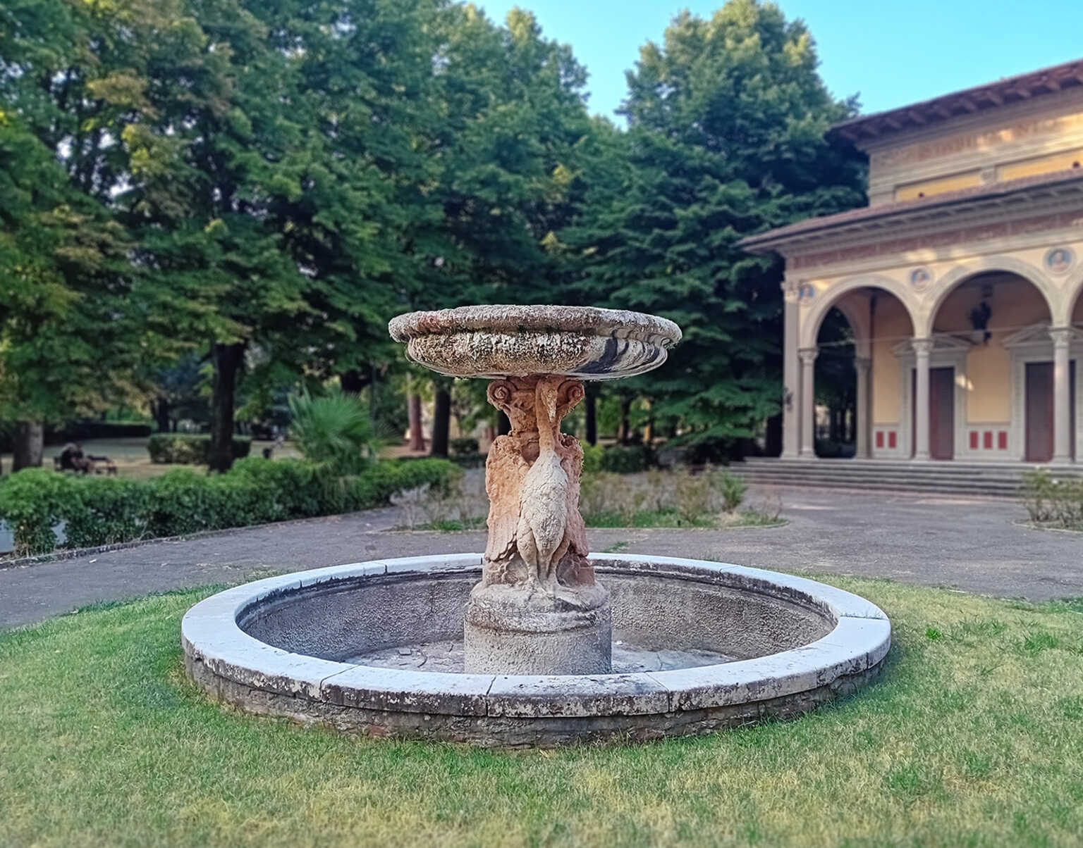 Chi percorre Viale Giuseppe Verdi non può non fermarsi un momento ad ammirare la Fontana dei Cigni, opera dello scultore Pirro Bianchi. Essa si trova al centro di un giardinetto triangolare sul quale si affaccia il piacevole loggiato di gusto rinascimentale delle Terme Excelsior