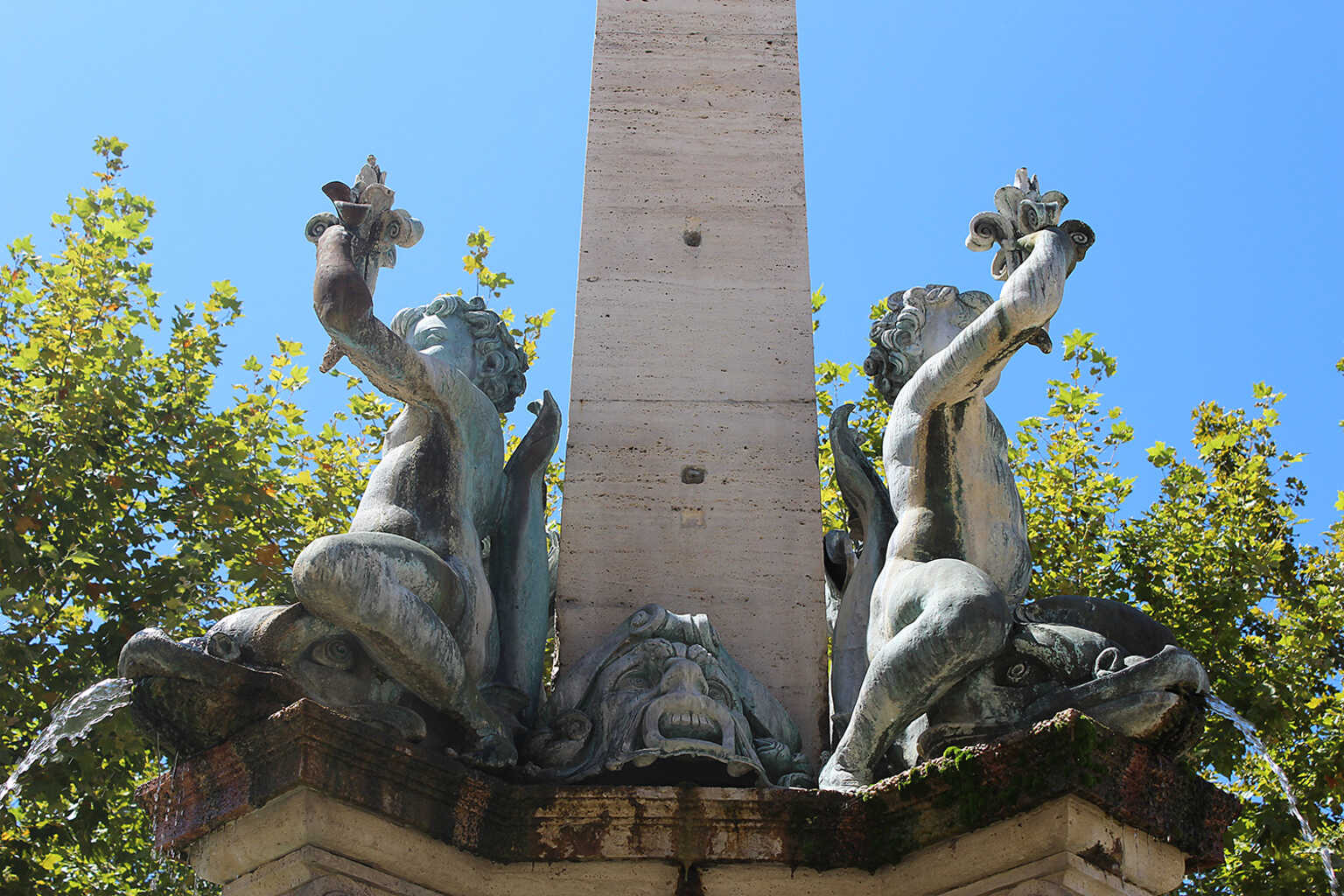 La Fontana Monumentale in Piazza del Popolo (allora Piazza Umberto I) fu eretta nel 1926 per volere della municipalità, nel luogo in cui dal 1834 si trovava una loggetta quadrangolare usata per mercati e fiere agricole. Il progetto fu realizzato dal professor Raffaello Brizzi, architetto montecatinese e Accademico delle Belle Arti con la supervisione dell’ingegner Luigi Righetti, allora capo dell'Ufficio Tecnico comunale, gli stessi cui si deve il Palazzo Comunale. L'opera, in travertino e bronzo, è costituita da un grande bacino circolare in cui si riversa l'acqua di quattro coppe, a loro volta alimentate dai getti d'acqua provenienti dai corni impugnati da putti che cavalcano dei delfini alla base di un obelisco centrale. Gli ornamenti in bronzo furono realizzati con la collaborazione dello scultore pistoiese Antonio Guidotti presso la Fonderia Capecchi di Pistoia. Sempre al professor Brizzi è da ascrivere la vasca in travertino realizzata, sempre nel 1926, in Piazza VII Settembre, allora denominata Piazza del Salsero.