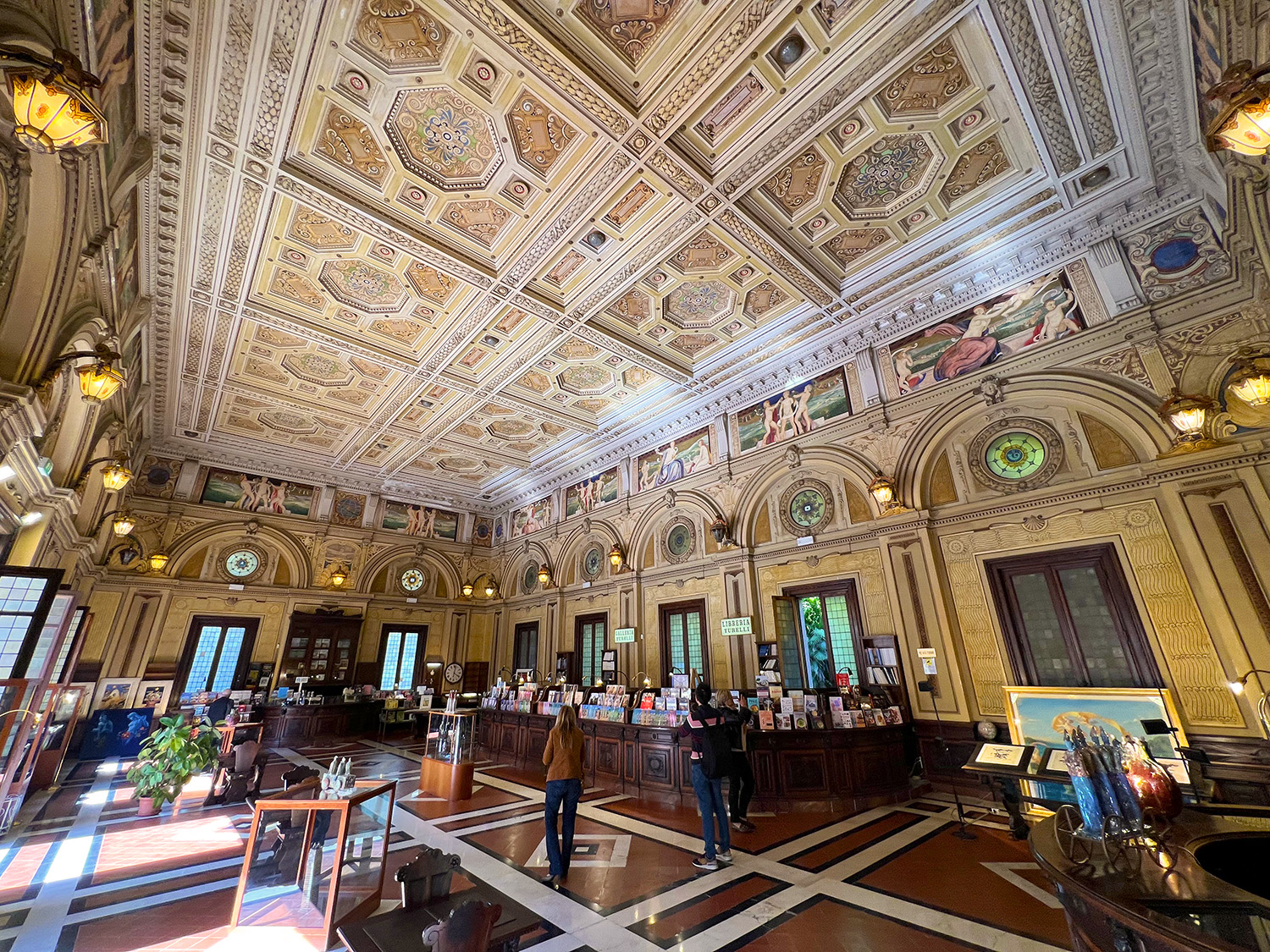 Il colonnato su cui si affaccia l’ingresso principale del Caffè storico è la Galleria dei Negozi su cui si trovano alcune attività.